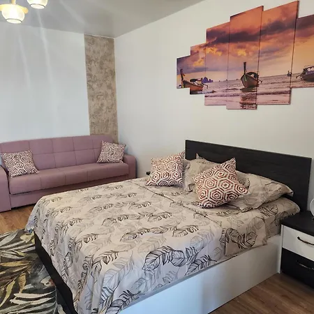 A fully equipped kitchen with a fridge and kitchenware is provided in the apartment, along with tea and coffee-making facilities. This 45 m^2 apartment is just a 10-minute walk from the nearest bus station - Statie autobuz.